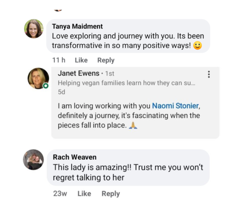 At first I was doubtful if I could do it, but these thoughts disappeared when I saw results from implementing actions/processes Naomi taught me.