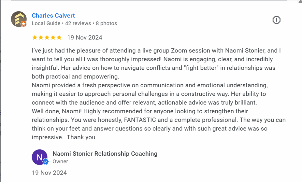 Naomi helped me realise the real issue was how I was speaking to myself. When I changed that, everything about how my wife and I communicated shifted.